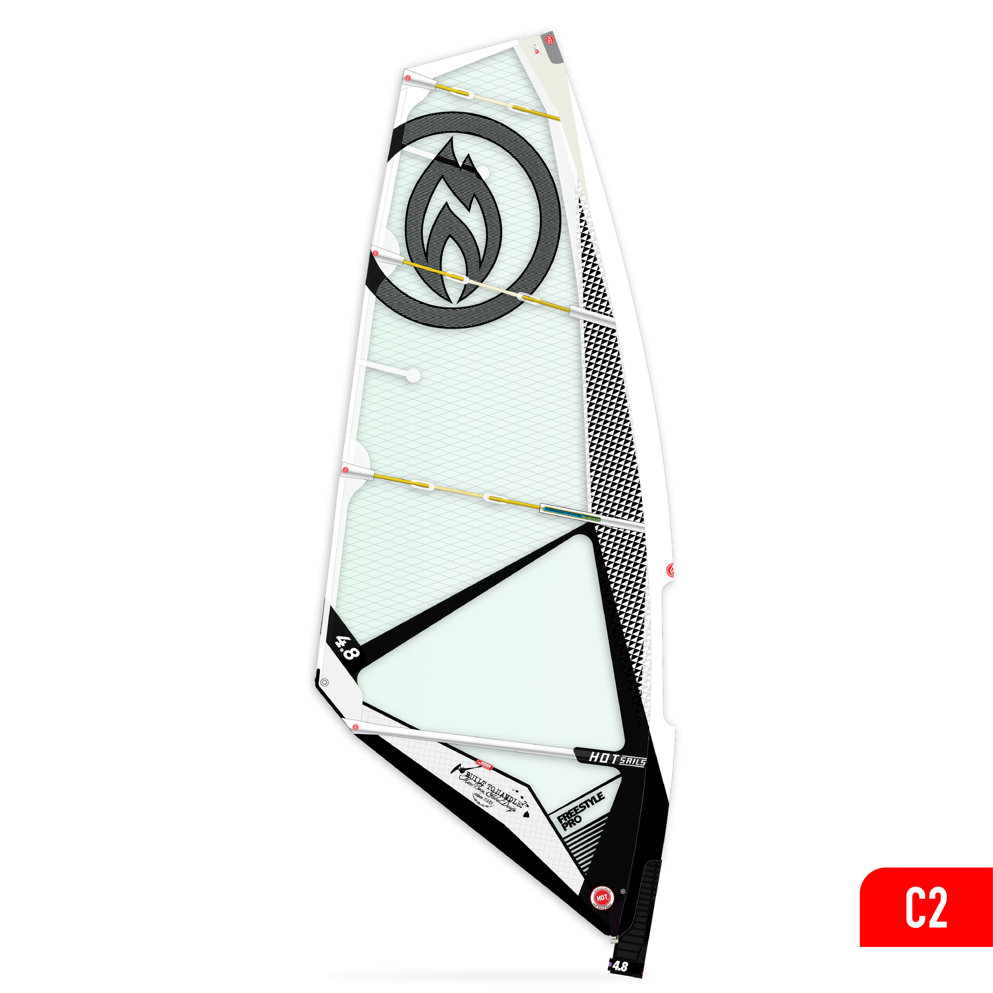 The FREESTYLE PRO continues to be one of the lightest but toughest Freestyle sails on the market. Our strong material construction can withstand intense slams and dives while being twisted and swept during the craziest of maneuvers. Our no-compromise design philosophy enables us to concentrate on easier ducking and instant power. These features help to lift the rider higher while delivering the drive and control needed for the second and third rotations. This is a PURE freestyle sail for advanced riders. If you are serious about your freestyle performance, then the Freestyle Pro, as the name suggests, is for you.