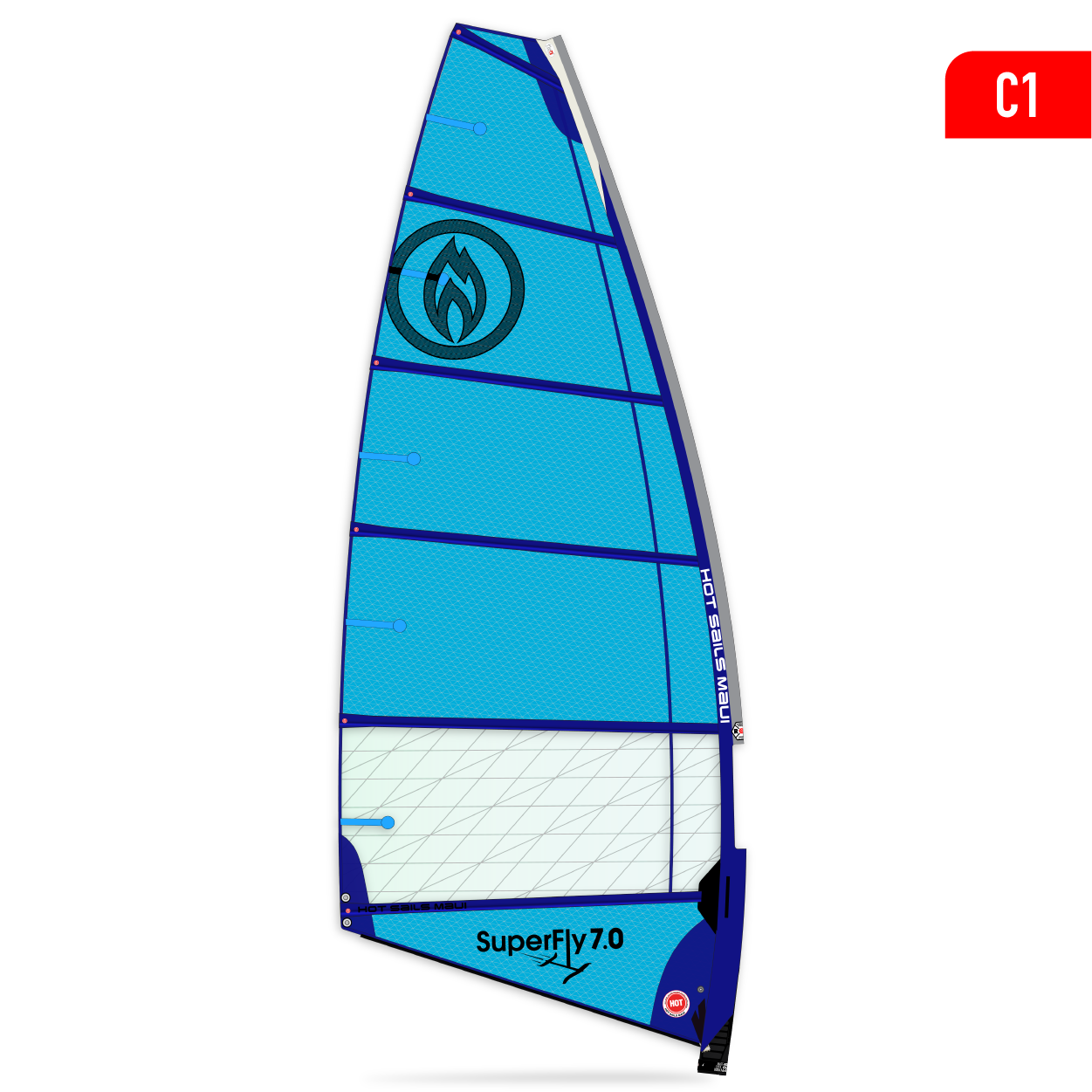 The SuperFly is the result of over 7 years of development with foil master Bruno Andre of AFS France, one of the premier foil brands in the world. This sail is extremely lightweight and high aspect, having a very tight leech and developing extreme power for lift off, and then is easily controlled when up on foil.