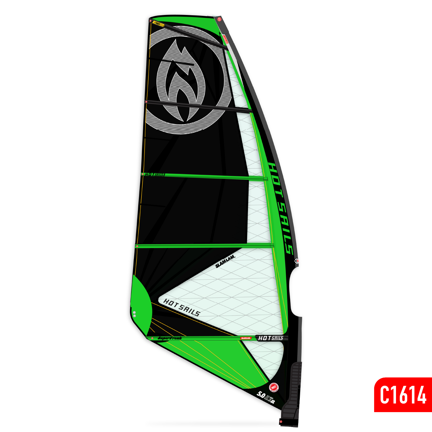 The SuperFreak Maui Edition is our hybrid freewave sail. This sail is 50% SuperFreak and 50% a modern X-ply wave sail. We extended the use of X-ply on this sail to both increase the visual benefits of more SlamLam® x-ply window material (see more!) and increase the direct feel of this sail. Though the sail is a SuperFreak at heart, it is much lighter than older ones and has a crisper, new feel. This is also the SuperFreak you want in near-freezing conditions when the strength of the SlamLam® window is unaffected by cold.
